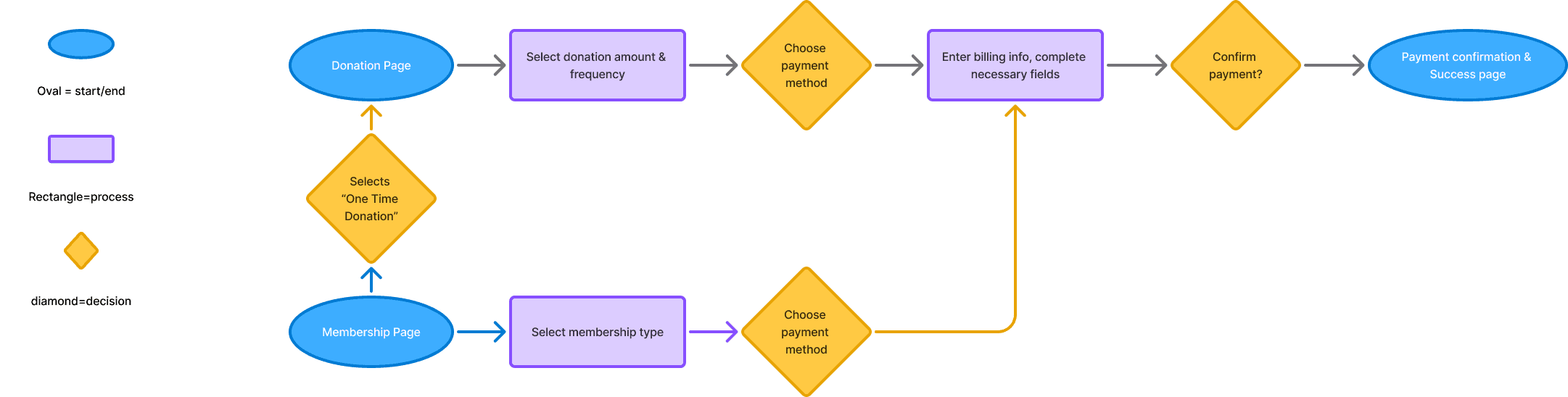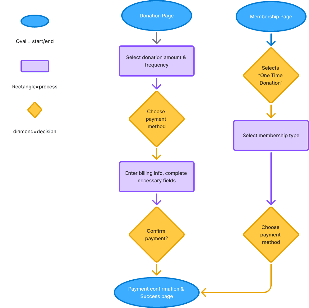 Separating donation and membership paths will reduce decision paralysis and increase completion rate